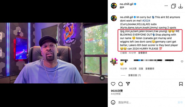 阿里纳斯还表示:我们会大杀四方,别再喷我们了,听着,加拿大的穆雷和维金斯没来我不在乎德国不会再变强了,湖人队第6号得分手(施罗德,上赛季NBA场均12.6分)竟是他们最好的球员,2024年可以快点到来吗?