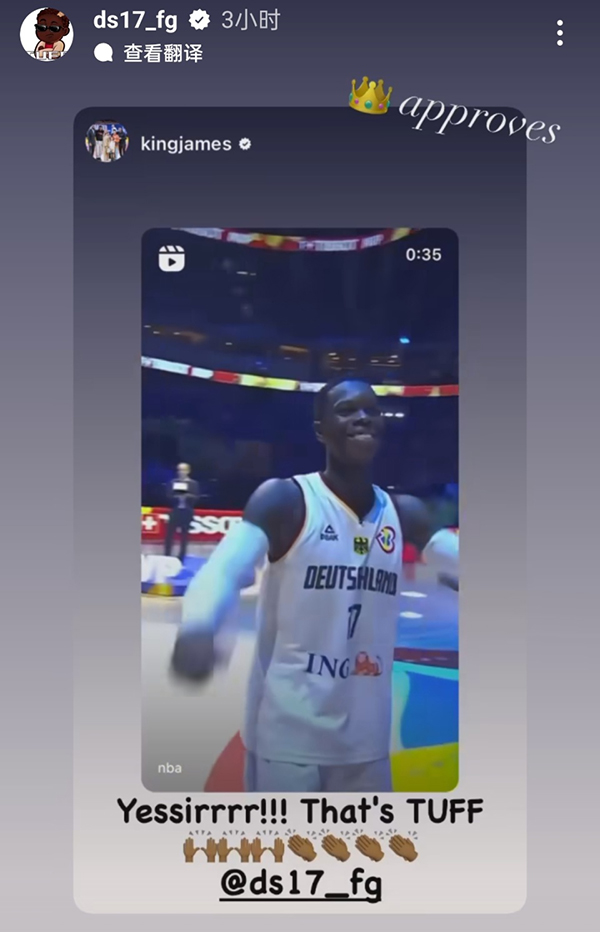 詹姆斯一直关注世界杯的进程,一天前他就转发过里夫斯和施罗德的动态,两人在德国队更衣室外深情相拥。詹姆斯当时的配文是:“我的兄弟们,我爱你们这些男孩。”