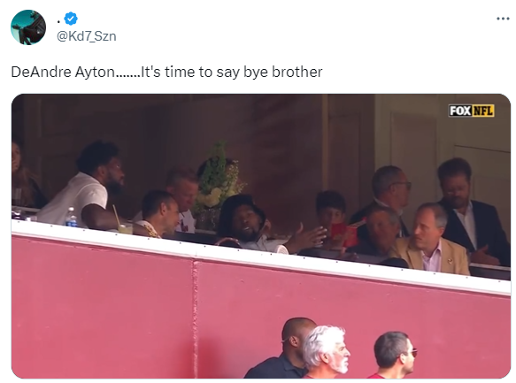 360直播09月11日,太阳球星杜兰特和76人球星恩比德一起观看NFL比赛引热议,球迷调侃再见了艾顿;两人都和湖人名宿&指挥官队老板魔术师合影。