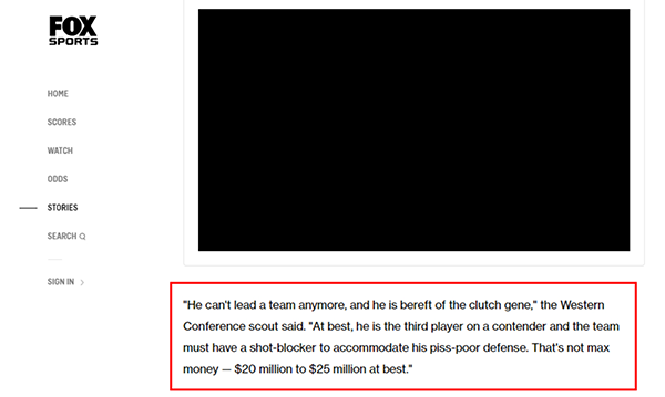 那么说现在的哈登是否值顶薪呢?根据《Fox体育》的报道显示,一位西部联盟的球探表示哈登关键时刻表现不佳,最多值2500万美元,称:“哈登再也不能领导一支球队了,而且他在关键时刻也表现不佳。最多,他只能成为争冠球队中的第三号球员。而且球队必须拥有一位好的防守球员来弥补他糟糕的防守。所以,他不值得顶薪,最多值得2000-2500万美元。”