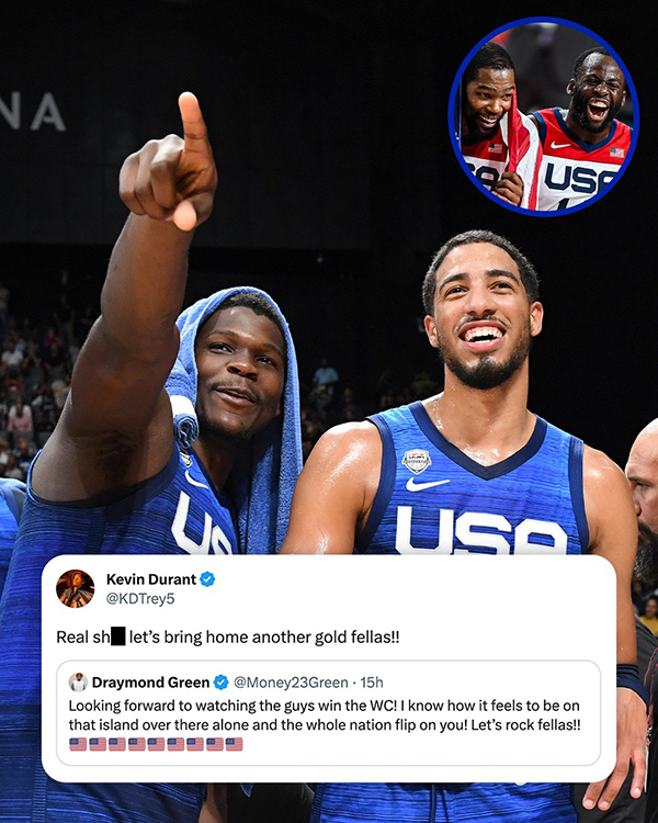 太阳球星杜兰特回复格林并且写道:说真的,兄弟们,让我们再带一块金牌带回家。