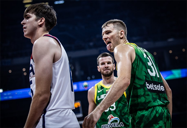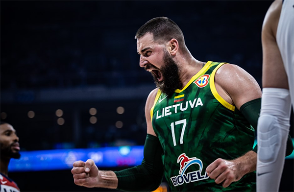 在击败美国男篮的比赛中,立陶宛第二节一度领先到21分,虽然第三节被美国男篮追到个位数,但立陶宛众将末节再次带队领先到两位数,关键时刻顶住压力,最终110-104击败美国队;立陶宛时隔19年再次击败美国男篮,后者遭遇本届世界杯首败。
