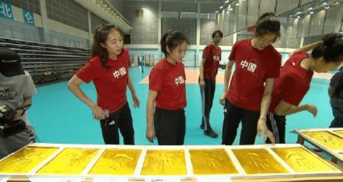 同时在宁波北仑结束训练之后,中国女排全队还进行了一个特别的仪式,那就是中国女排所有球员,教练员按下“金手印”手模留念,也是用这样的方式表达决心,中国女排这12名球员要全力冲击奥运会金牌。