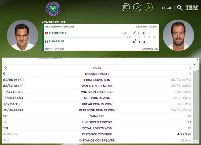 进行到比赛的决胜盘,尽管加斯奎特展开了反击,但是大满贯经验更加丰富的瑞士人,最终依靠多破发一局的优势,轻松以6-4取得了全场比赛的胜利。