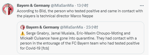 拜仁停止发放未接种疫苗而被隔离的球员的薪水,这批球员对消息被曝光感到愤怒,他们希望在公共场合得到更多支持。