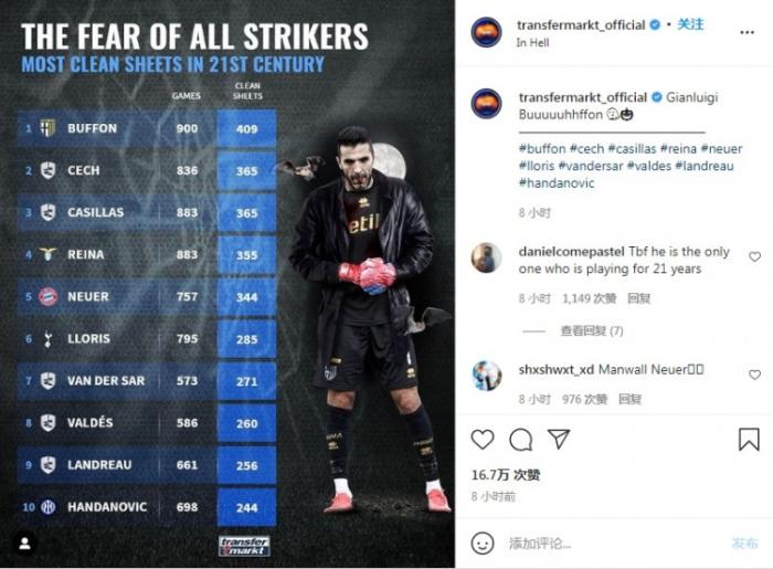 360直播11月01日讯 谁是本世纪最好的门将?或许大部分球迷都会选择布冯,毕竟本世纪到现在,布冯的表现一直都是顶级的,他一直都是足坛一流的门将,而事实上也是如此。近日,德国权威媒体《转会市场网》就盘点了本世纪门将零封榜,排名榜首的就是布冯,他完成了400次零封,而第二的是切赫,不过切赫非常可惜,因为他职业生涯后期被阿森纳的后防线给坑了,不然的话,他有可能超过布冯哦。