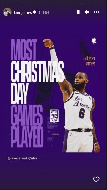 谈到第17次参加年终大战,詹姆斯表示:不幸的是我的家人已经习惯了圣诞节我不在家,幸运的是我能在圣诞节当天打比赛,我仍然能够打出当前的水准,仍然可以在我们热爱这项比赛的球迷面前出战圣诞大战,这是我的荣幸。