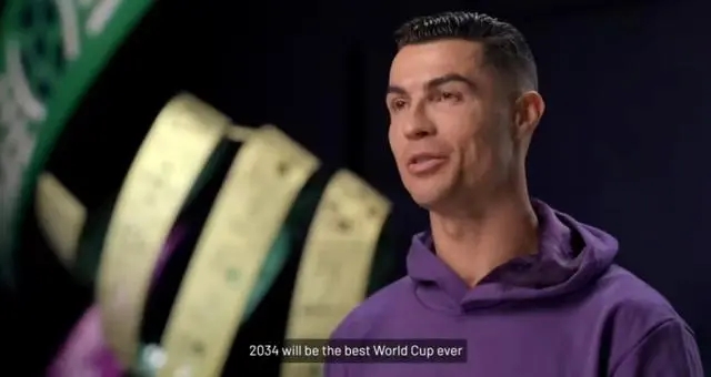 360直播讯C罗更新视频,为沙特世界杯做宣传,他表示2034年世界杯将会是有史以来最棒的世界杯。