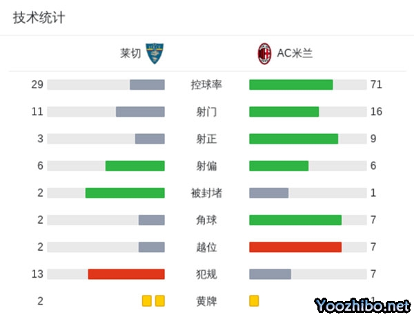 第59分钟,莱奥前场传球失误,莱切反击,吉尔伯特接到队友分球,禁区内右侧送出横传,克尔斯托维奇跟进推射破门,莱切2-0AC米兰。