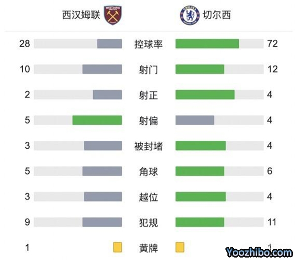 全场比赛结束,最终切尔西1-1西汉姆联!