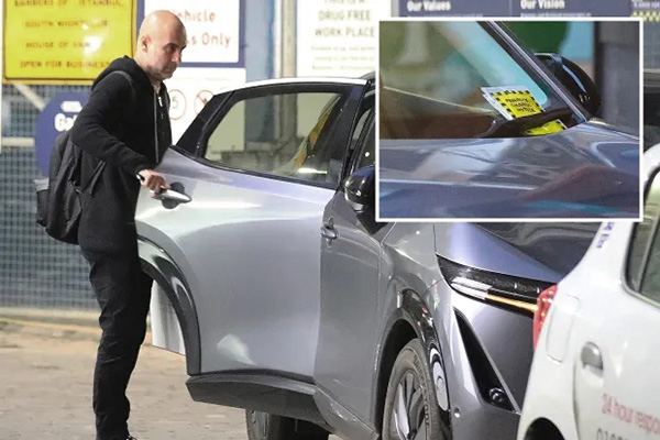 周日,瓜迪奥拉将车停在了曼彻斯特市中心,因为停车不规范,他驾驶的尼桑电动4x4的车窗上被贴了一张60英镑的罚单。
