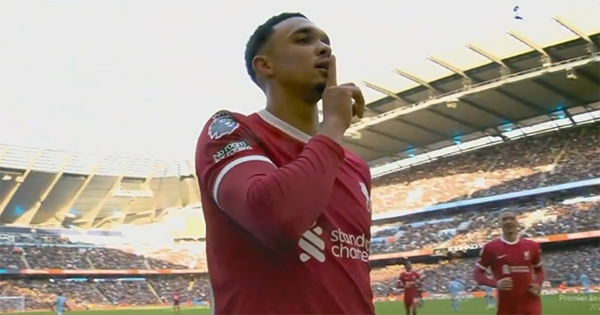 利物浦的阿诺德扳平比分,他做出了闭嘴的庆祝动作,这场比赛的阿诺德一度被对手长时间在边路压制,表现低迷,但他用关键时刻的进球,证明了自己的实力,这也是阿诺德在本赛季英超的第一个进球,很不容易,实现救赎。