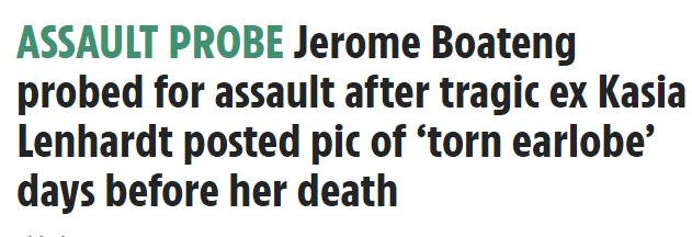 《太阳报》表示,博阿滕因为卡西娅耳垂撕裂等伤害接受调查。慕尼黑检察官办公室表示,博阿滕在2019年10月与对卡西娅故意伤害的指控有关,这项指控本来在2020年6月被撤销了,但是此事因为可能与卡西娅身亡有关,所以被再次调查。