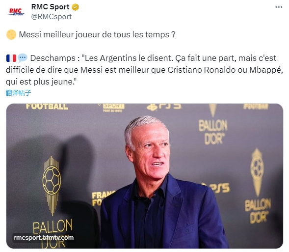 他在周一晚于巴黎举行的金球奖颁奖典礼上对Futbol Picante说道:“阿根廷人(说梅西是史上最佳)。他是他们中的一员,但很难说梅西比克里斯蒂亚诺-罗纳尔多或更年轻的姆巴佩更优秀。"
