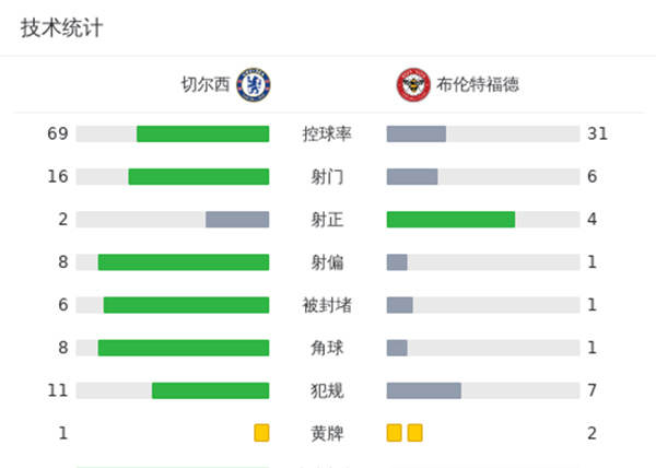 最终全场比赛结束,切尔西0-2布伦特福德。