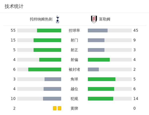 最终热刺主场2-0战胜富勒姆。