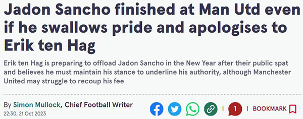 曼联高层支持滕哈格,因此英媒预计桑乔将与巨星C罗遭遇相同的结局,在1月份冬季转会窗离队。曼联也想把他卖给最有钱的沙特阿拉伯联赛,但球员本人拒绝了这一方案,夏窗他就没有接受达曼协作的转会邀请。