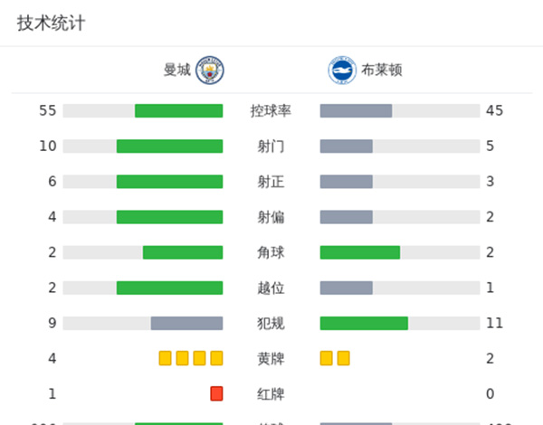 关键事件: 第7分钟,多库左路突入禁区,随后送出倒三角传球,阿尔瓦雷斯跟进攻门得手,曼城1-0布莱顿。