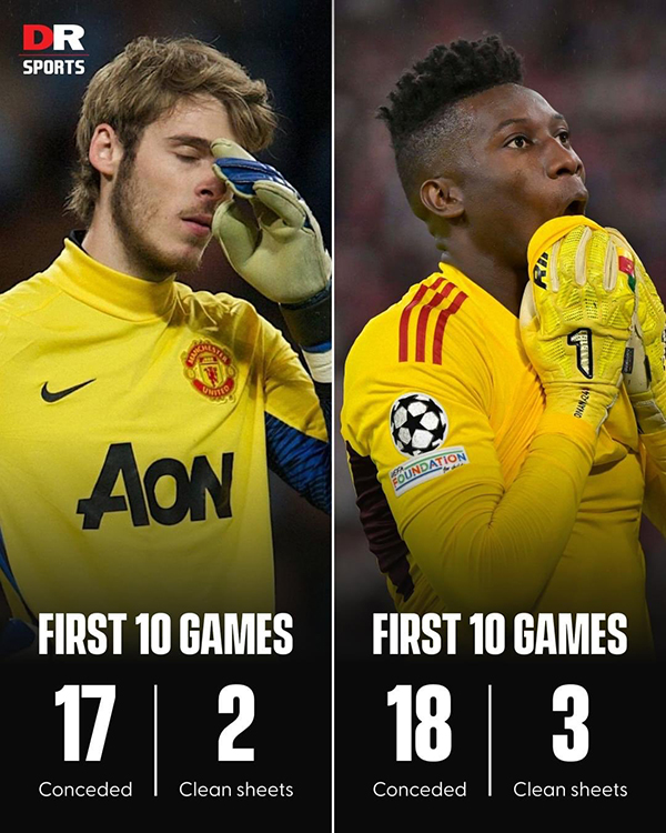 有人用德赫亚初来乍到时也有失误的事例,认为必须给奥纳纳更多时间。两人红魔生涯初期的数据确实非常相似,但区别在于当年的西班牙门将只有19岁,而奥纳纳已经27岁,人们肯定期望他马上发挥作用。名宿加里·内维尔说:「曼联的新门将没有迅速站稳脚跟,这带来了问题。如果你的球队里的守门员不稳定,防线周围就会混乱,这会造成巨大的问题,我在曼联也经历过。」