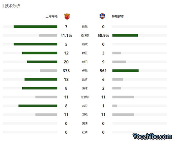全场结束,海港7-0大胜梅州客家。